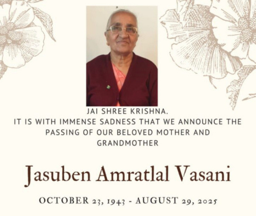 Rambai Khetsi Vasani passed away on Monday 23rd June 2014. She will be greatly missed by her family and friends.